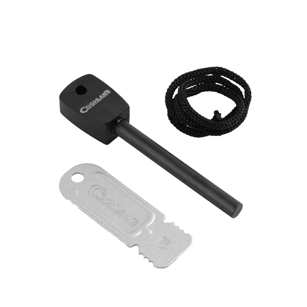 Ignite a fire easily with the Coghlan's Flint Striker. This long-lasting fire-starting tool produces fire-igniting sparks for thousands of strikes. Made from ferrocerium, the rod easily emits sparks when scraped by the attached metal striker. Featuring a large handle for easy grip, this tool performs in all weather conditions and altitudes, ensuring you can light combustibles in any situation.
