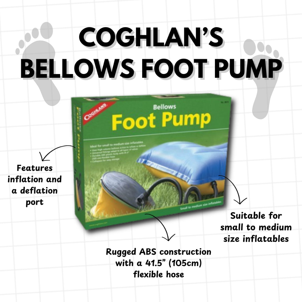 Bellows action forces 3000CC of air into the inflatable. Foot Pump is suitable for small to medium size inflatables. Features inflation and a deflation port. Rugged ABS construction with a 41.5” (105cm) flexible hose and universal fittings adapt to all types of valves. Collapses for easy storage.