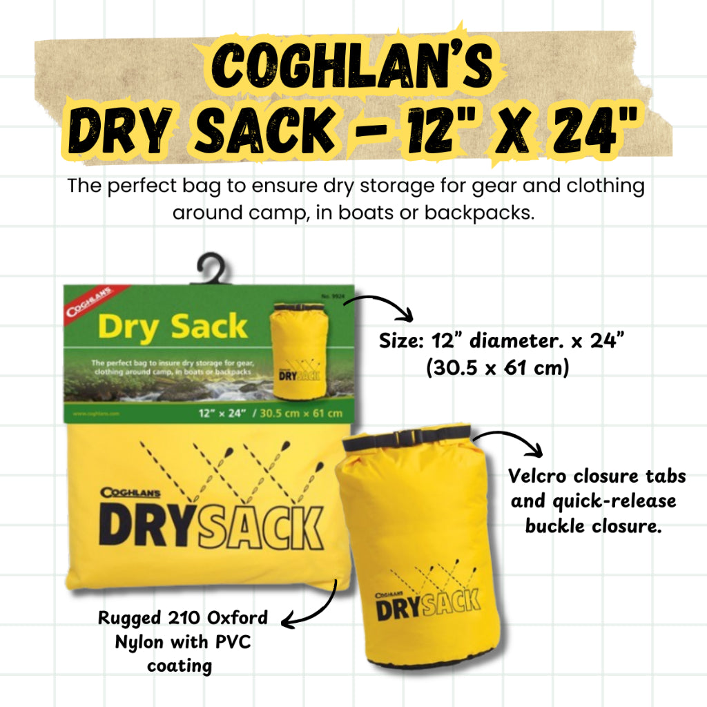 The perfect bag to ensure dry storage for gear and clothing around camp or in boats or backpacks. Rugged 210 Oxford Nylon with PVC coating made with sewn, hot-air taped seams. Velcro closure tabs and quick-release buckle closure. Round bottom to maximize volume.