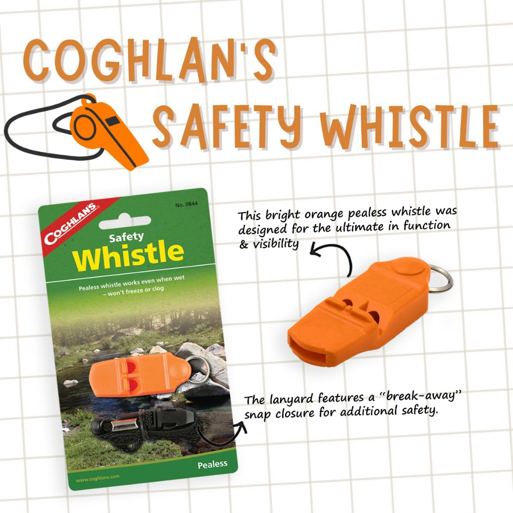 This bright orange pealess whistle was designed for the ultimate in function and visibility. The lanyard features a “break-away” snap closure for additional safety.