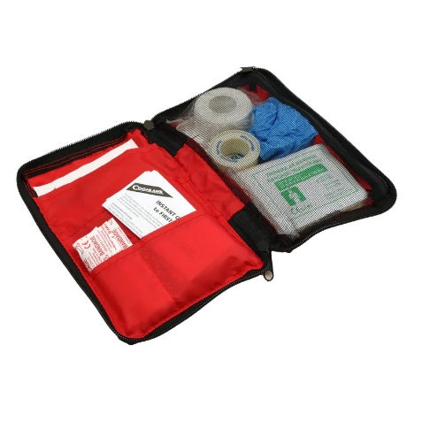 Accidents happen in the outdoors, be prepared with Coghlan's Trek 2 First Aid Kit. This compact and practical kit provides everything you need to treat minor wounds while camping such as cuts, scrapes, and burns. Great for weekends outdoors, this kit contains 40 items in a lightweight zippered pouch. Bring the Trek 2 along in your backpack, car, boat, or travel bag on all your adventures to be prepared.