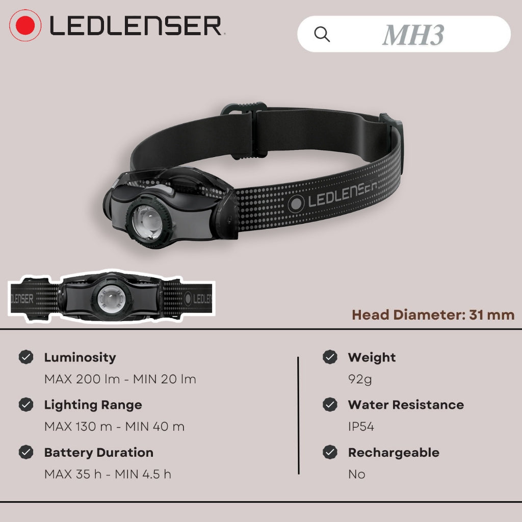A stylish and compact buddy for all kinds of outdoor activities: With just a few hand movements, you can transform your MH3 from a headlamp to a multipurpose light. Our innovative mounting system is easy to use and the clip on the lamp head makes securing it to your shirt or belt simple. And of course the MH3 gives you maximum flexibility when used as a headlamp: the Advanced Focus System allows for quick and easy beam adjustment and the smooth swivel mechanism always directs the light exactly where you need it.