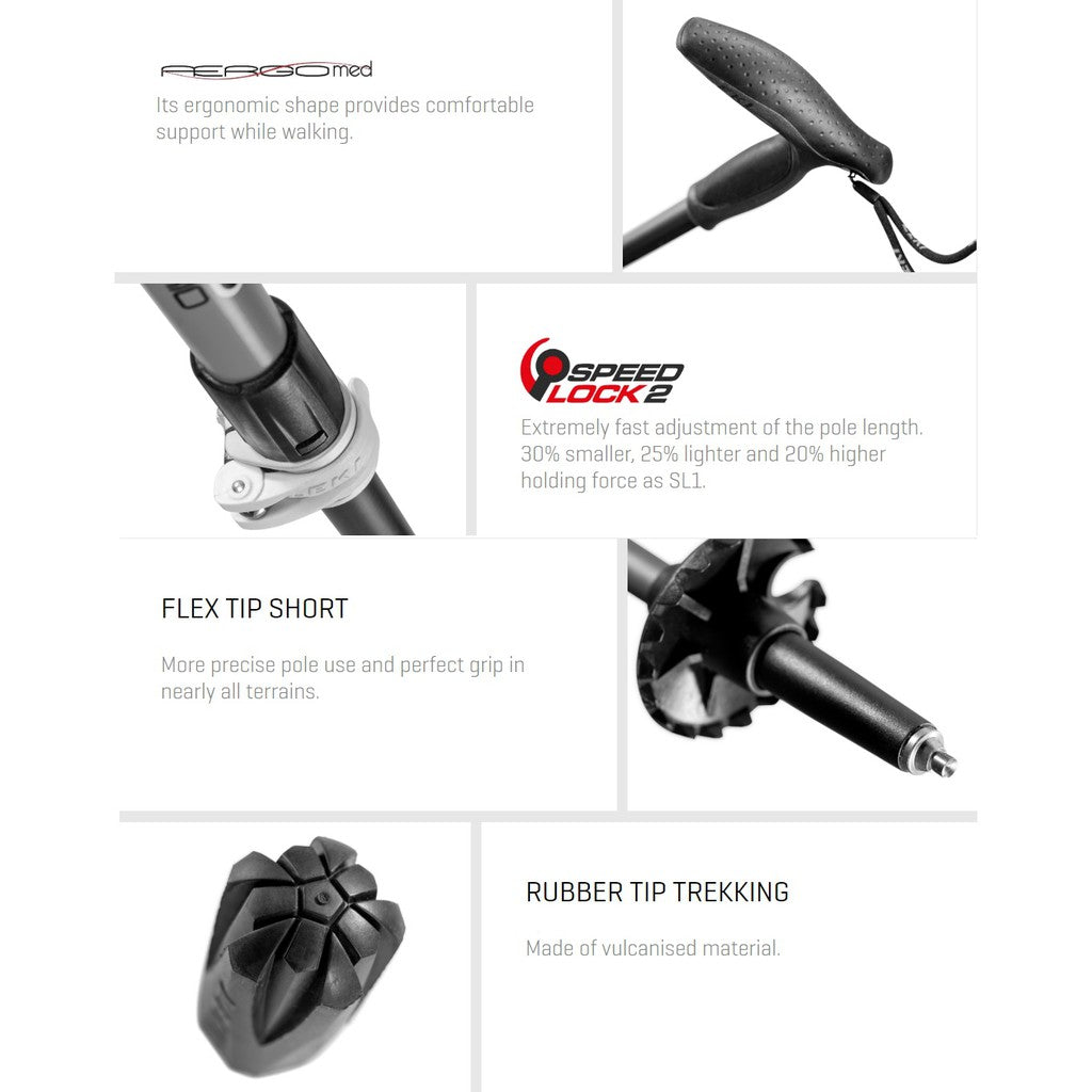 A high-quality and extremely lightweight folding pole made from carbon for elderly users. Thanks to the ELD External Locking Device, the pole can be folded together quickly and easily, making it the ideal companion for trips and excursions. The Aergomed grip sits flexibly in the hand with its ergonomic design, and relieves both the surface of the hands as well as the forearms. With the Speed Lock 2.0 adjustment system, this Leki Legend Series Micro can quickly be adjusted between 85 cm and 100 cm.