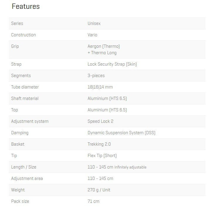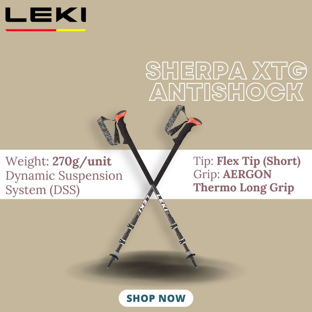 Is demanding trekking your passion? Then the Sherpa XTG AS is your ideal companion. This robust all-rounder, made from HTS 6.5 aluminium, can withstand even the hardest strains. Its DSS Antishock System reduces impact force when using the pole by up to 40%, thereby protecting your joints and ligaments. The anatomically formed AERGON Thermo Long Grip sits very well in your hand and provides a large supporting surface on the handle. The grip extension also gives you a pleasant and secure grip when you want a closer grip on the pole. Weighing in at 270 g and having an adjustable length of 110-145 cm, the Sherpa XTG AS is your perfect mountain companion.