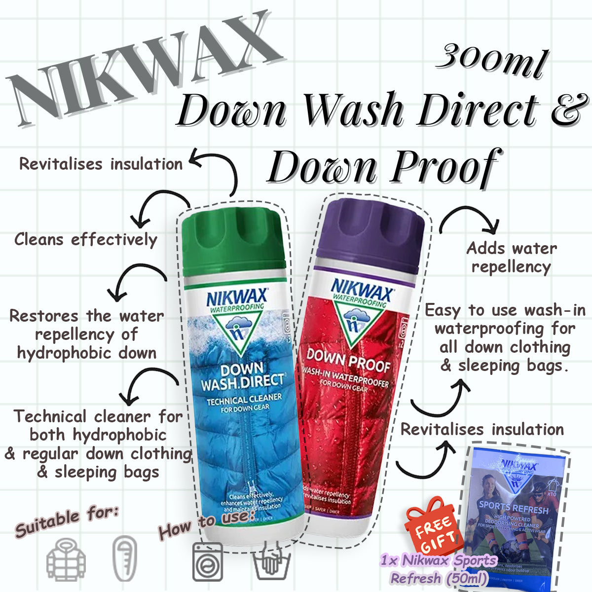 Nikwax Down Wash Direct and Down Proof Set | Detergent | Waterproof