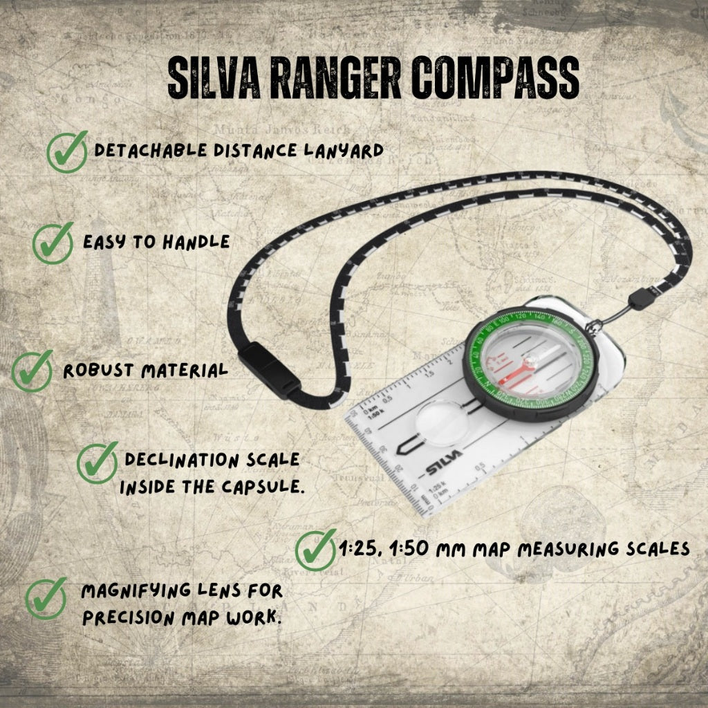 The popular SILVA Ranger series has gone through a face-lift with updated colors and updated graphics. A completely new feature is the distance lanyard; a lanyard with scales (1:25, and 1:50) which facilitates to measure the distance of your hike.