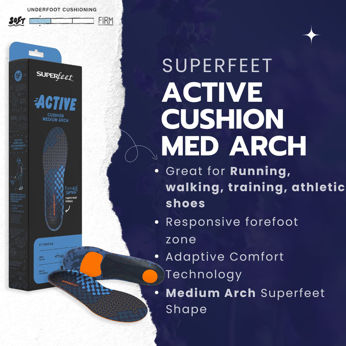 SUPERFEET ACTIVE CUSHION MED ARCH INSOLES (GREAT FOR RUNNING & WALKING SHOES)