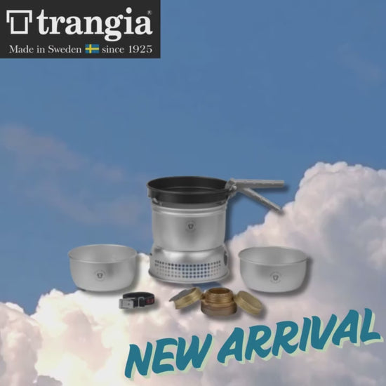 TRANGIA STOVE 27 SMALL is suitable for 1-2 people. All our 27 series stove sets include two one-litre saucepans (one inner, one outer), a frypan, a windshield (upper and lower part), burner, handle and strap.