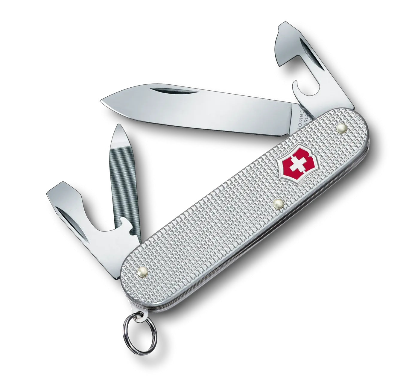 • Swiss made pocket knife with 9 functions and high-grade Alox scales