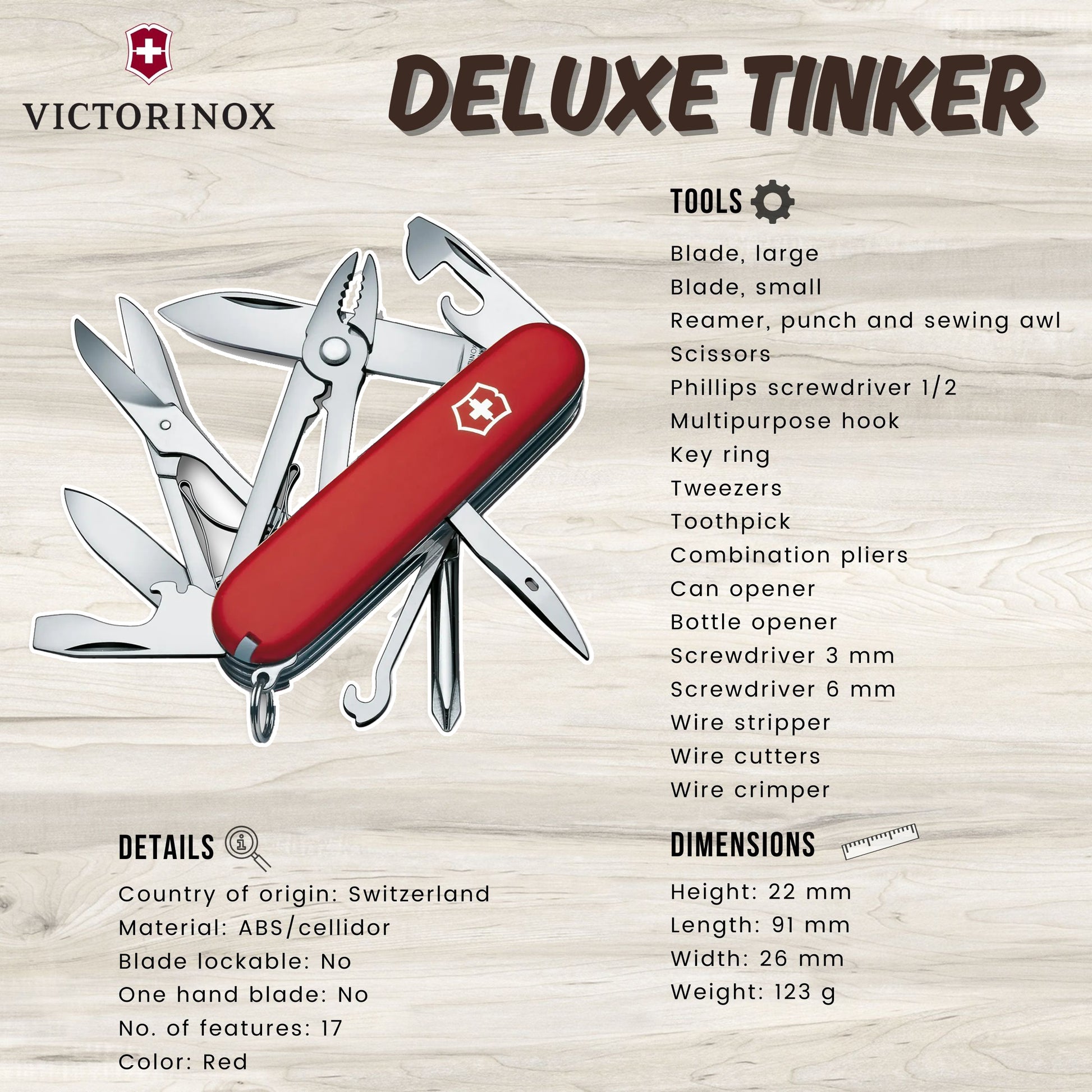Whether you're simply moving through your day or journeying around the world, the Deluxe Tinker pocket knife is the Officer's knife for tinkers on the move. You never know what you'll encounter out there, but you know that you and your Deluxe Tinker will always be ready to build, hack, or fix anything.