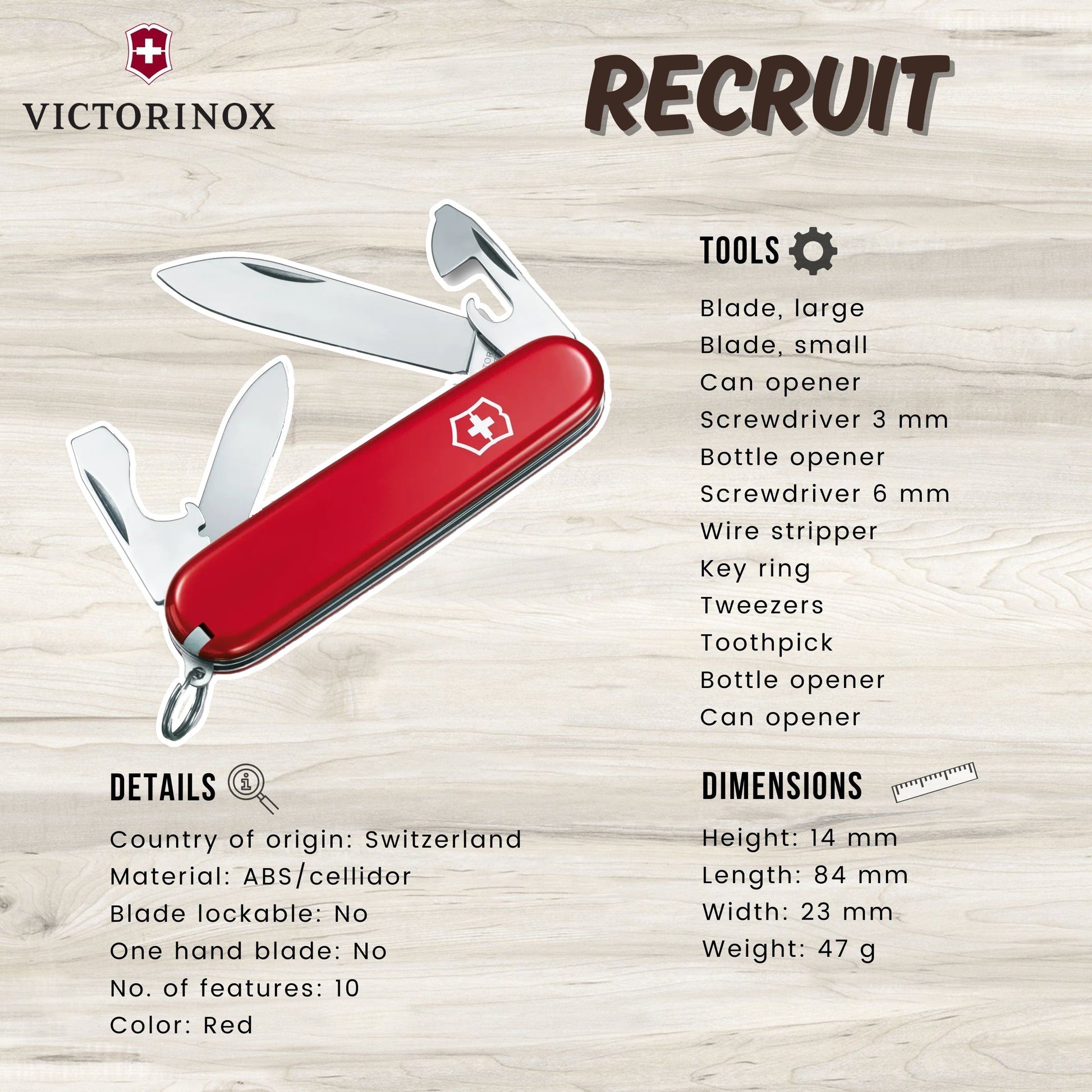 When the outdoors are calling you, don't just take a message. Get out there and enjoy – and bring your Recruit pocket knife with you. Whatever happens, the Recruit is the helpful, reliable, all-rounder that you can count on. Keep it in your pocket for all your everyday adventures.